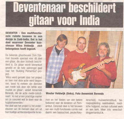 De bekende gitaarbouwer Dick Dijkman bouwde speciaal voor dit doel een gitaar, die door Veldwijk beschilderd is. De gitaar wordt binnenkort geveild en de hele opbrengst gaat naar het 'Building Pernambut'-project.